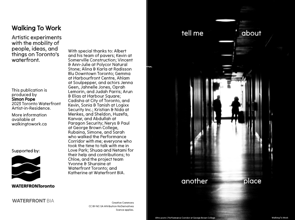 This article features content from Waterfront Toronto’s article, Looking Back at the 2023 Toronto Waterfront Artist Residency and images from Simon Pope’s Walking to Work website.