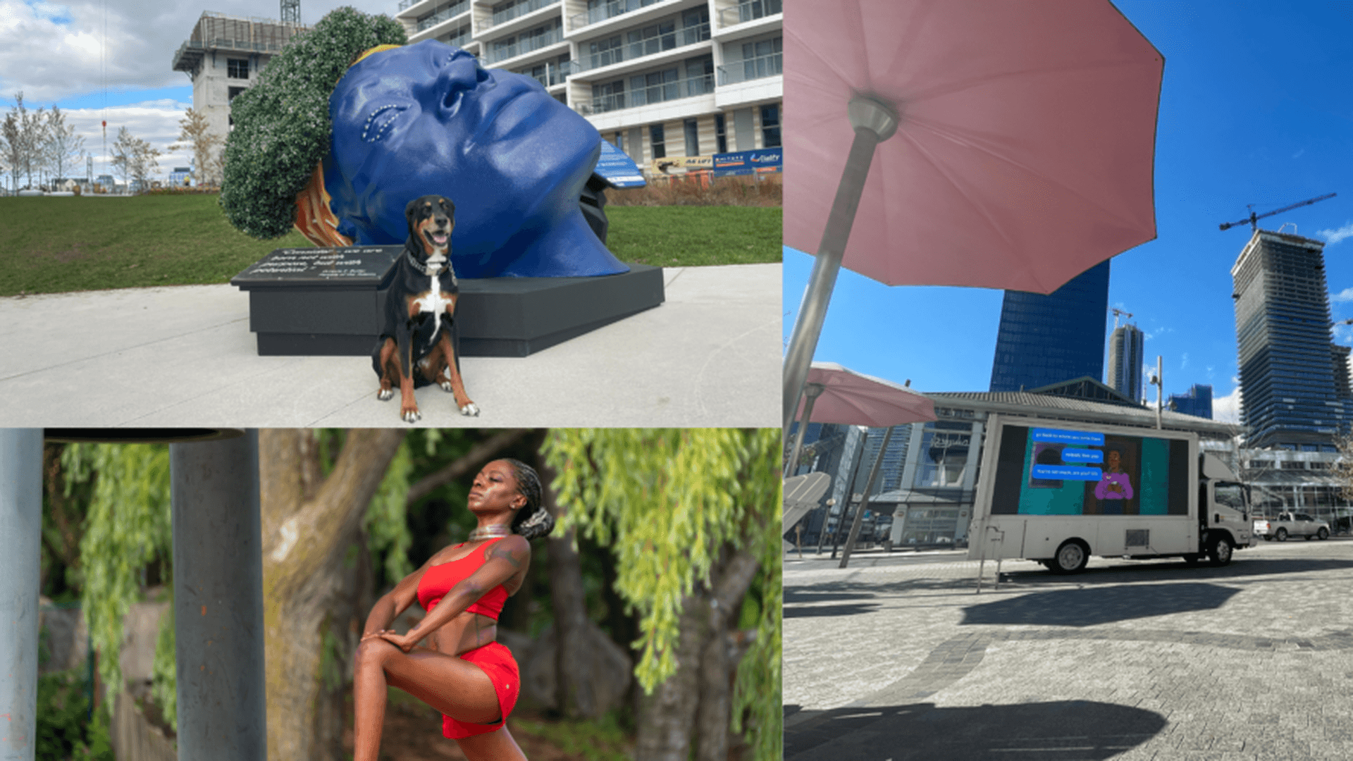 The waterfront has loved hosting the first ever Waterfront Artists in Residence, the Black Speculative Arts Movement (BSAM) Canada, for the past 16 months. This residency was commissioned through a partnership between the Waterfront BIA via the City of Toronto BIA Innovation Fund and Waterfront Toronto in October 2020 and our artists worked hard throughout the challenges of completing this residency during the COVID-19 pandemic with grace and ingenuity.