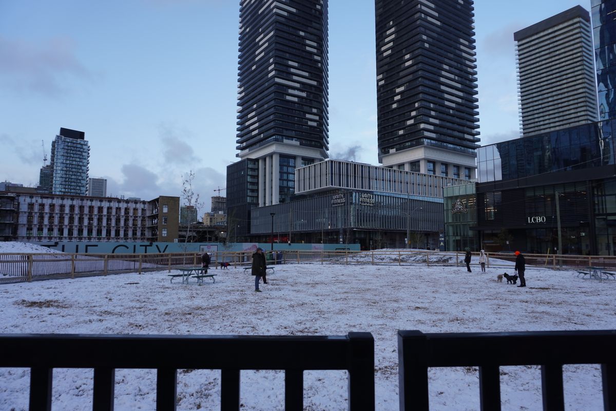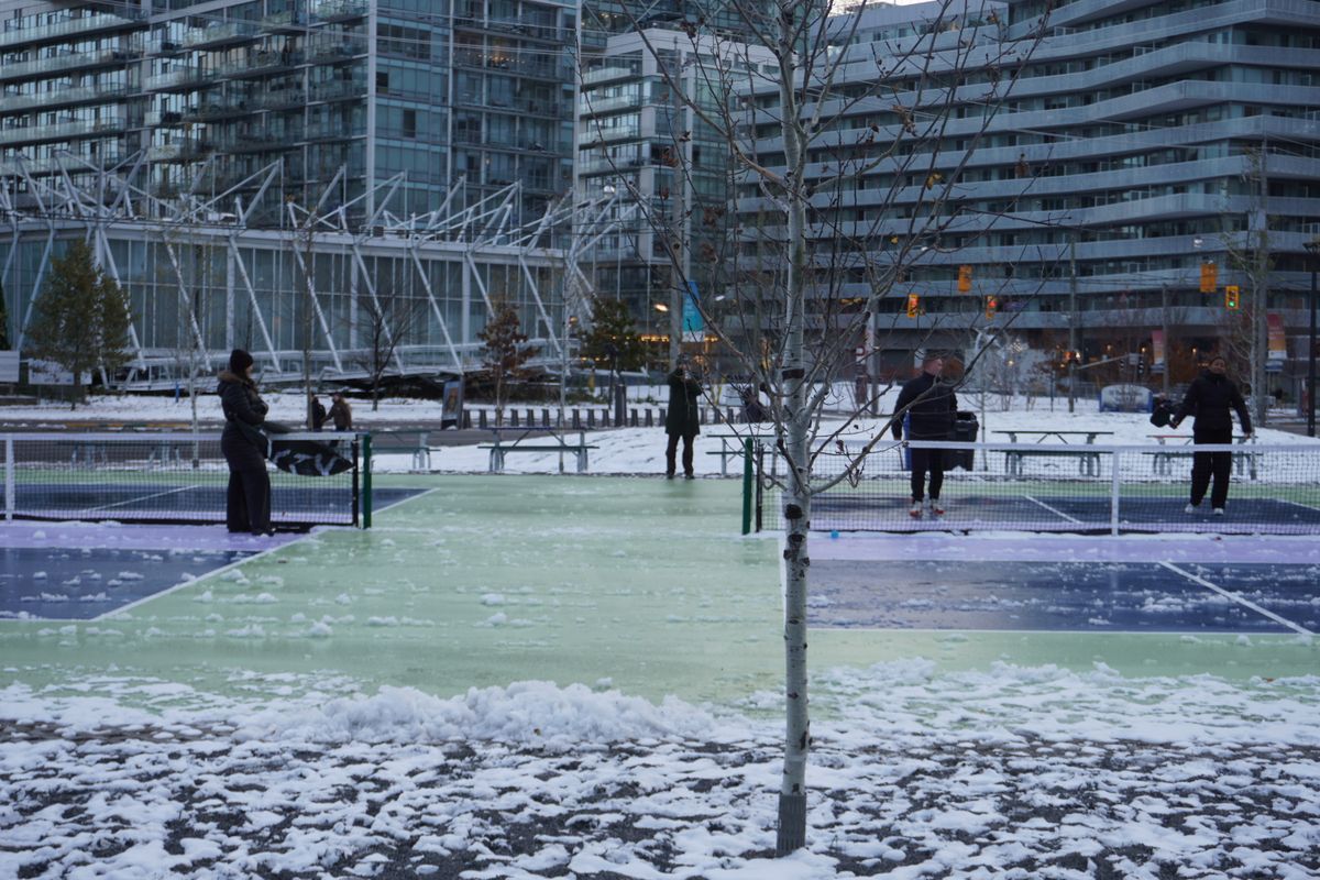 The new park enhances the pedestrian experience along Queens Quay and offers a welcoming space year-round.