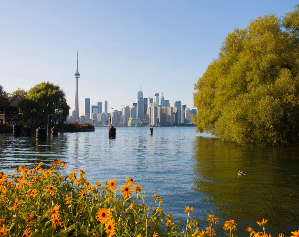 For the best views of the city skyline, check out the pier at the Centre Island Ferry Dock or Olympic Island. The Toronto Islands have many city skyline viewpoints, but the ones mentioned are a quick walk away from the cherry blossoms.